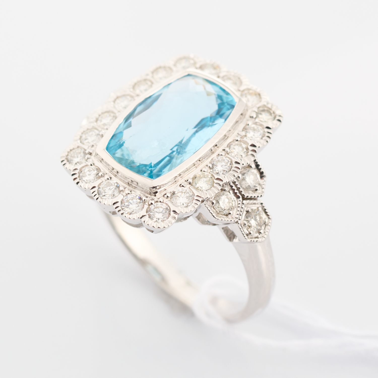 AN AQUAMARINE AND DIAMOND RING, FEATURING AN AQUAMARINE WEIGHING 2.48CTS AND DIAMONDS TOTALLING 0.70CT, IN 18CT WHITE GOLD, 5.85GMS