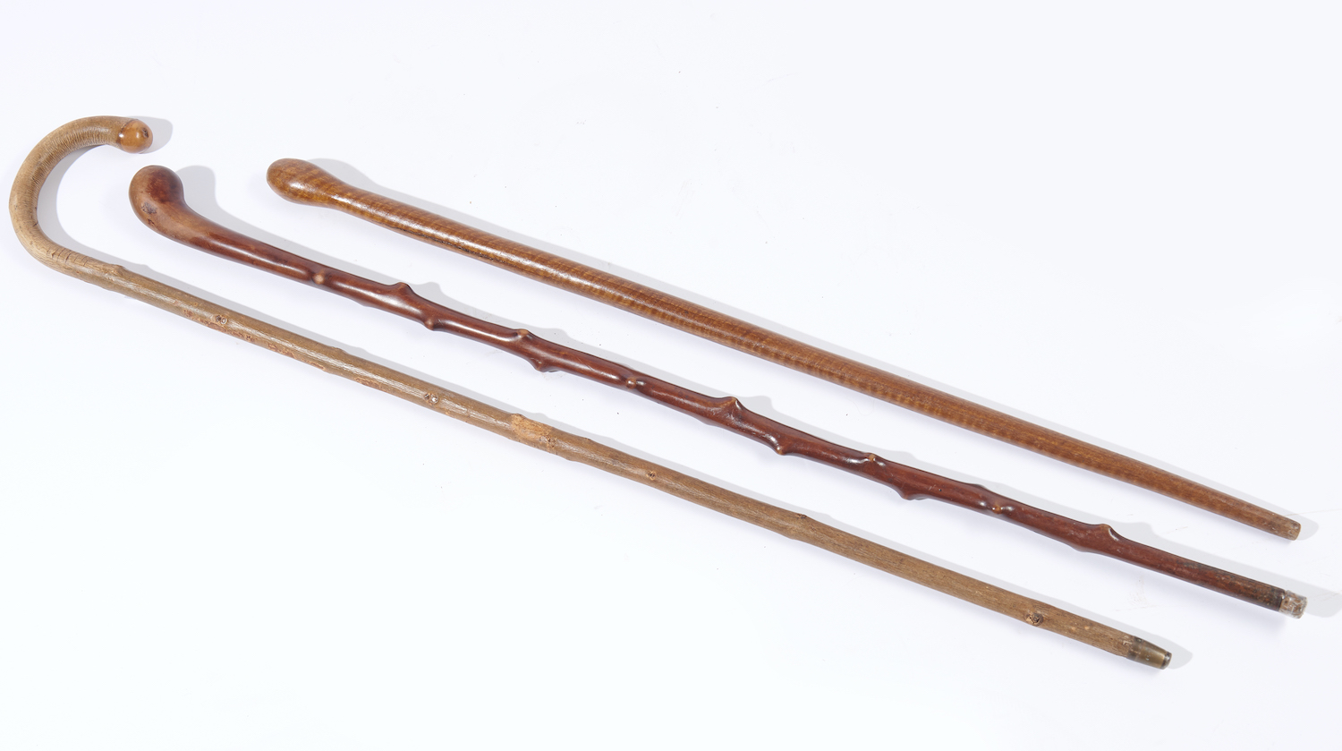 Comprising a shillelagh walking stick, a hardwood walking stick and a cane