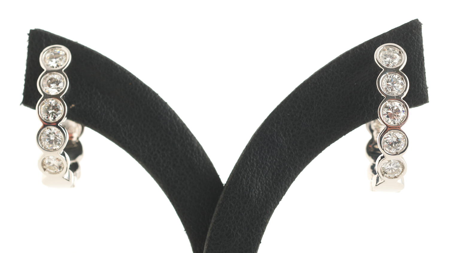 A PAIR OF DIAMOND HOOP EARRINGS TOTALLING 1.20CTS, IN 18CT WHITE GOLD, 8.5GMS