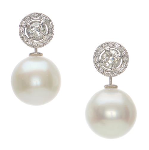 The earrings present in excellent, as new condition with all stones intact and secure in settings. The pearls have an excellent lustre, with some small blemishes to back. Diamonds an estimated I, SI-P1.