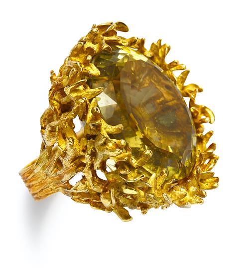 18CT GOLD AND LEMON QUARTZ RING, ANINA, CIRCA 1960