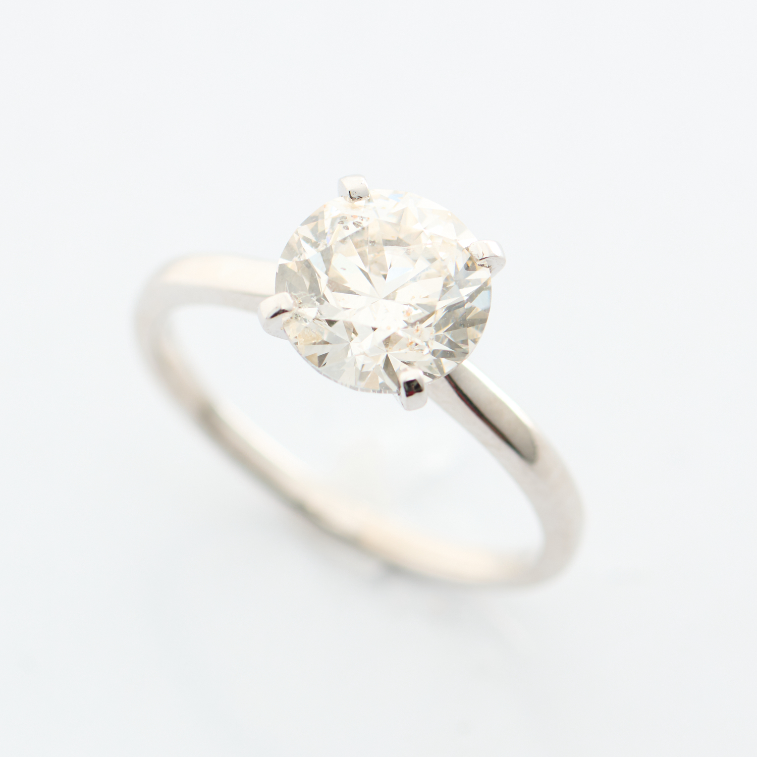 A DIAMOND SET SOLITAIRE RING A ROUND BRILLIANT CUT DIAMOND OF 2.05CTS, I-K COLOUR, P1 CLARITY IN 14CT WHITE GOLD, 2.5GMS, WITH VAL