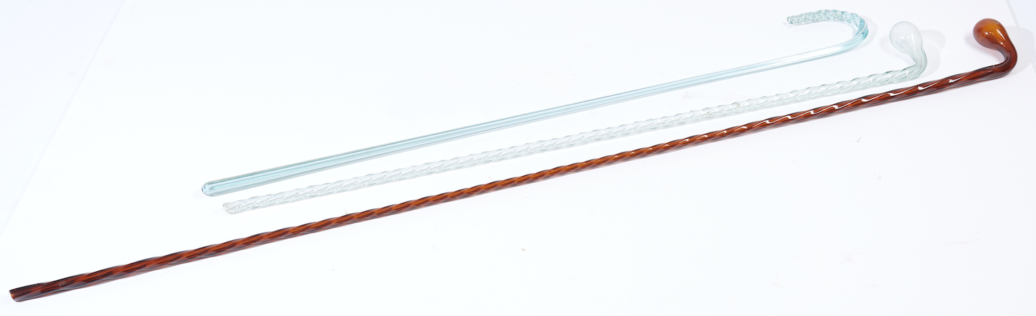 THREE ENGLISH GLASS WALKING CANES