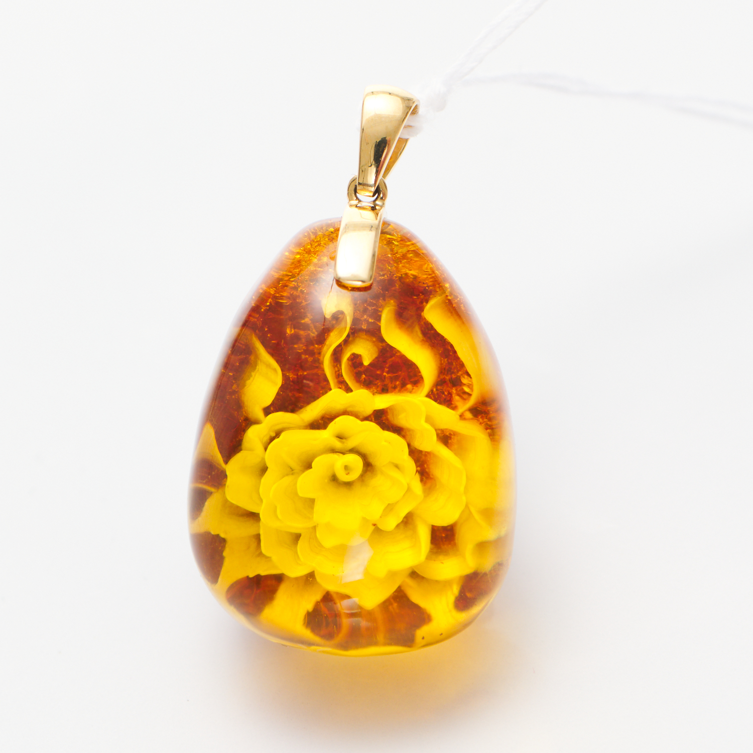 A CARVED AMBER PENDANT BY "KATIES" IN 18CT GOLD