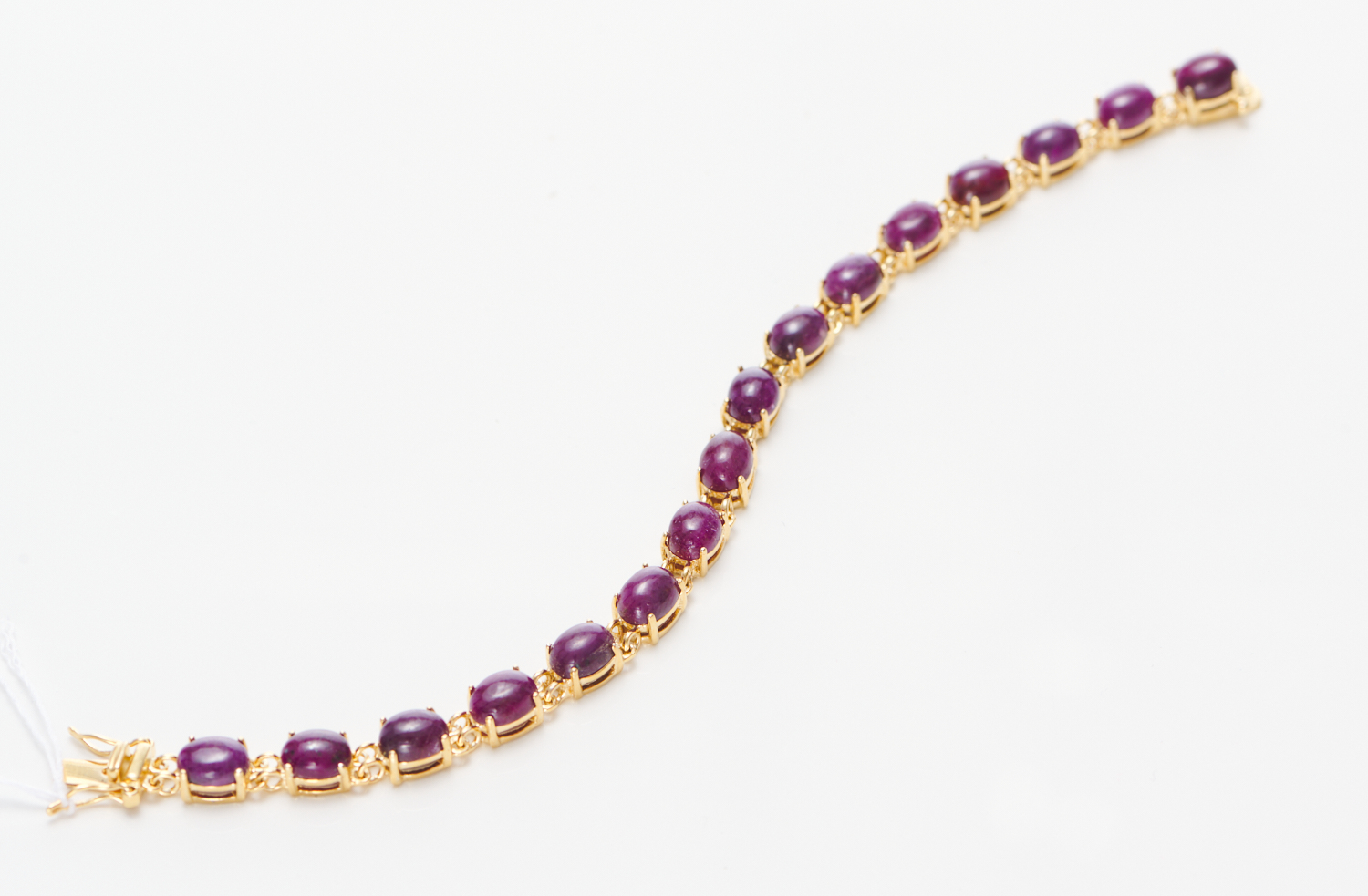 A RUBY BRACELET IN GOLD PLATED SILVER, THE RUBY APPROXIMATELY 16CTS, TOTAL LENGTH 180MM