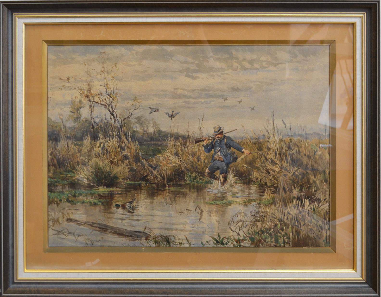 COLEMAN, DUCK HUNTING SCENE IN ROMA, WATERCOLOUR, 45 X 63CM, OVERALL FRAME: 66 X 84.5CM