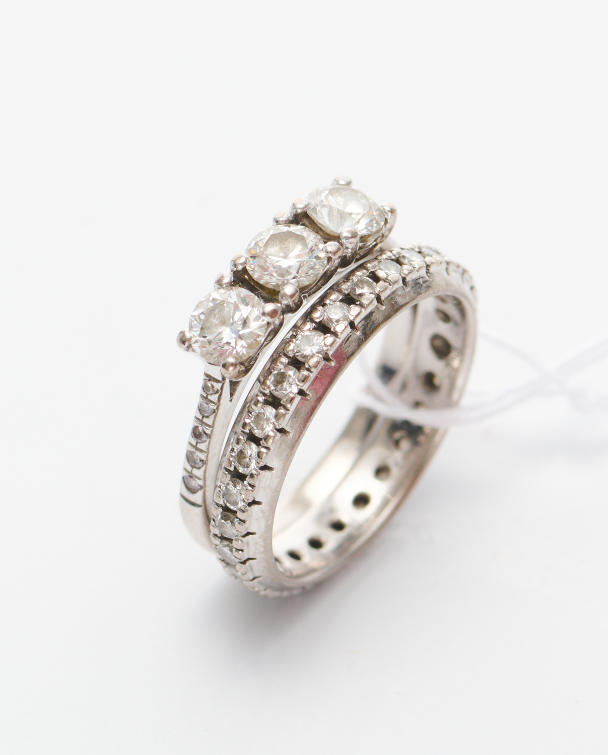 A PAIR OF DIAMOND DROP EARRINGS IN 18CT WHITE GOLD, OF LEAF DESIGN COMPRISING ROUND BRILLIANT CUT AND BAGUETTE CUT DIAMONDS TOTALLING..