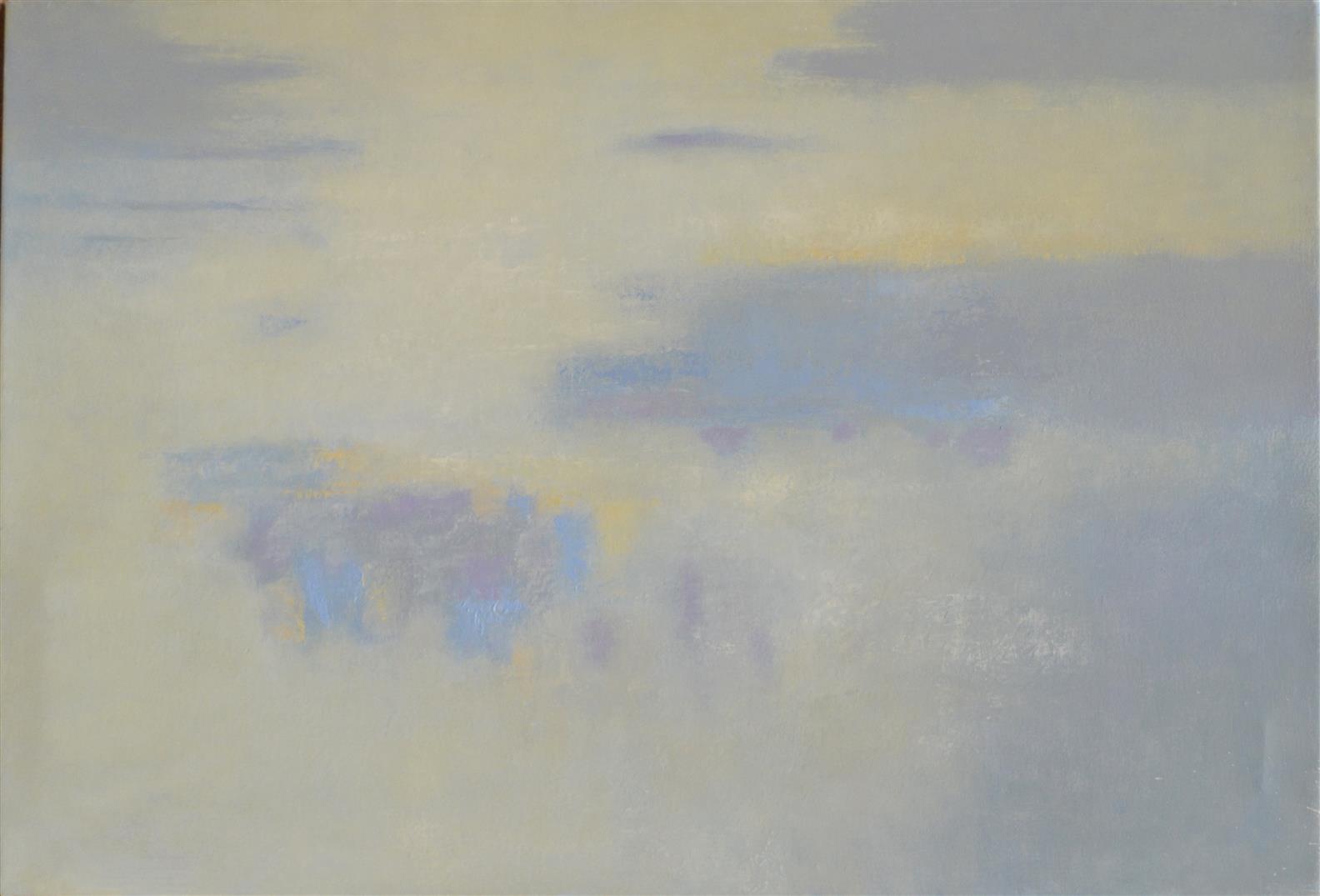OWEN PIGGOTT, TRANSITION INTO WHITE - BEYOND BLUE, OIL ON CANVAS, 61 X 98CM, LEONARD JOEL DELIVERY SIZE: MEDIUM