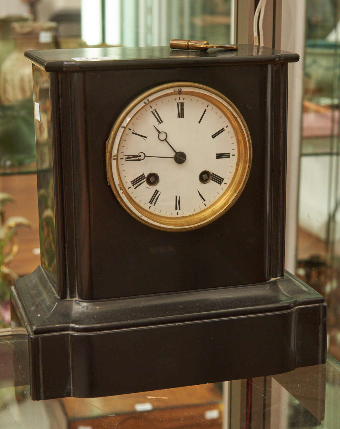 A FRENCH SLATE MANTEL CLOCK, LEONARD JOEL LOCAL DELIVERY SIZE: SMALL