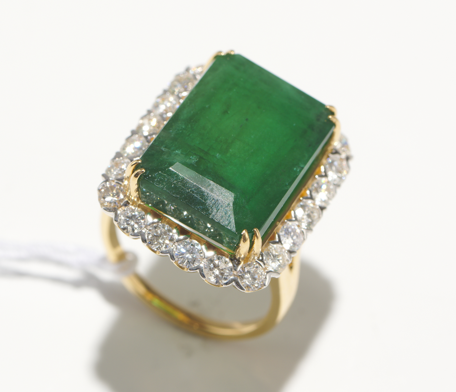 AN EMERALD AND DIAMOND CLUSTER RING