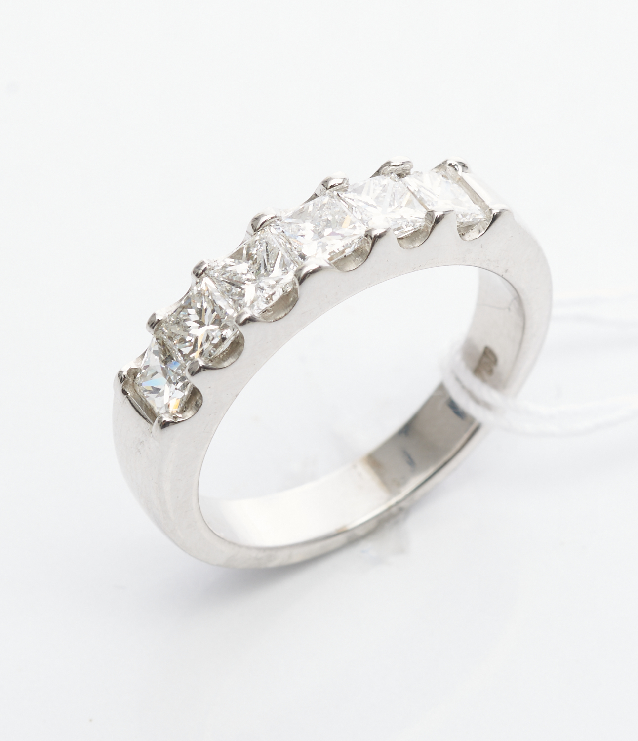 A DIAMOND HALF HOOP RING IN 18CT WHITE GOLD COMPRISING SIX PRINCESS CUT DIAMONDS TOTALLING 1.47CT, SIZE L, 6.13GMS