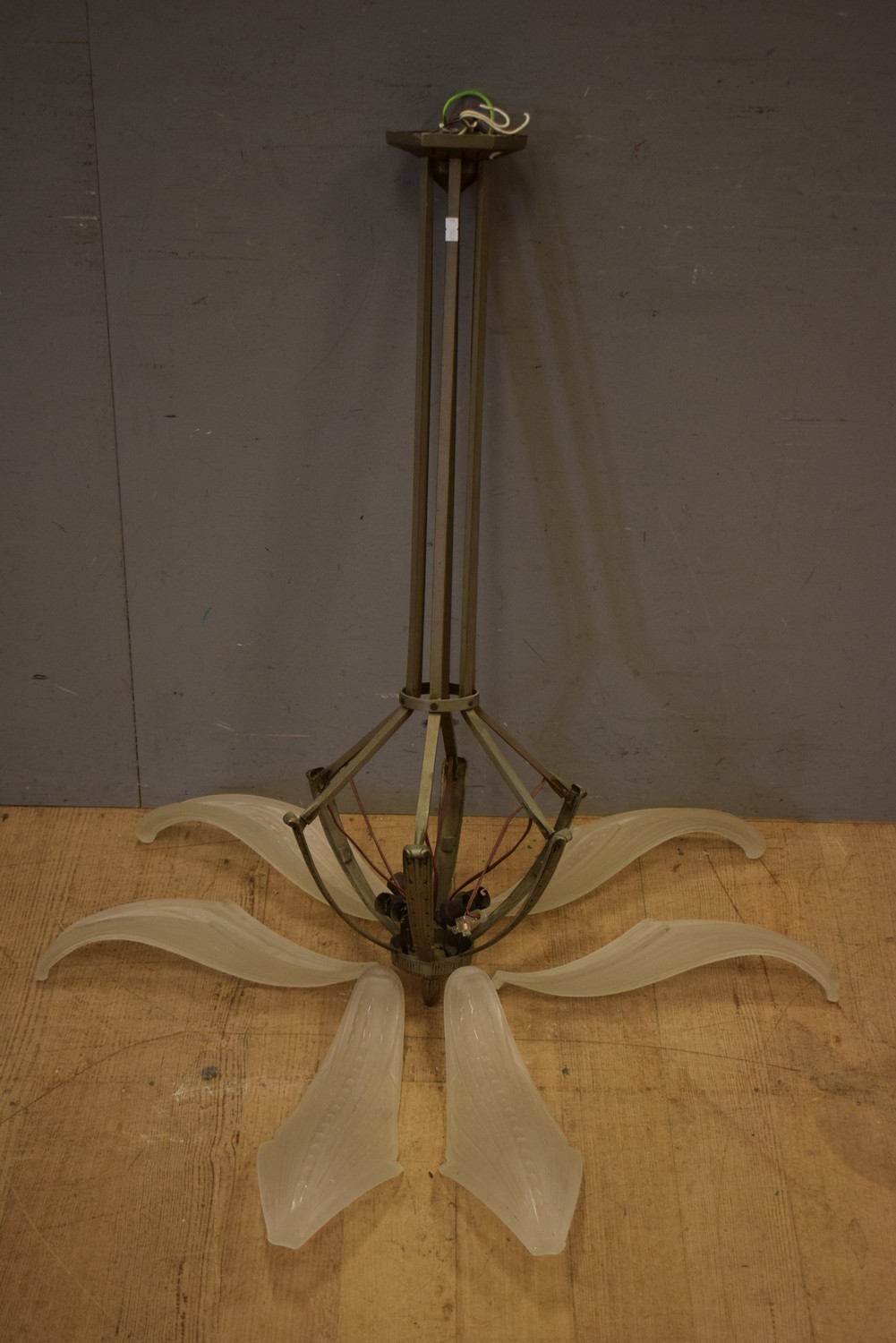 AN ART DECO GLASS SLIP SHADE LIGHT FITTING (97H CM) (LEONARD JOEL DELIVERY SIZE: LARGE)