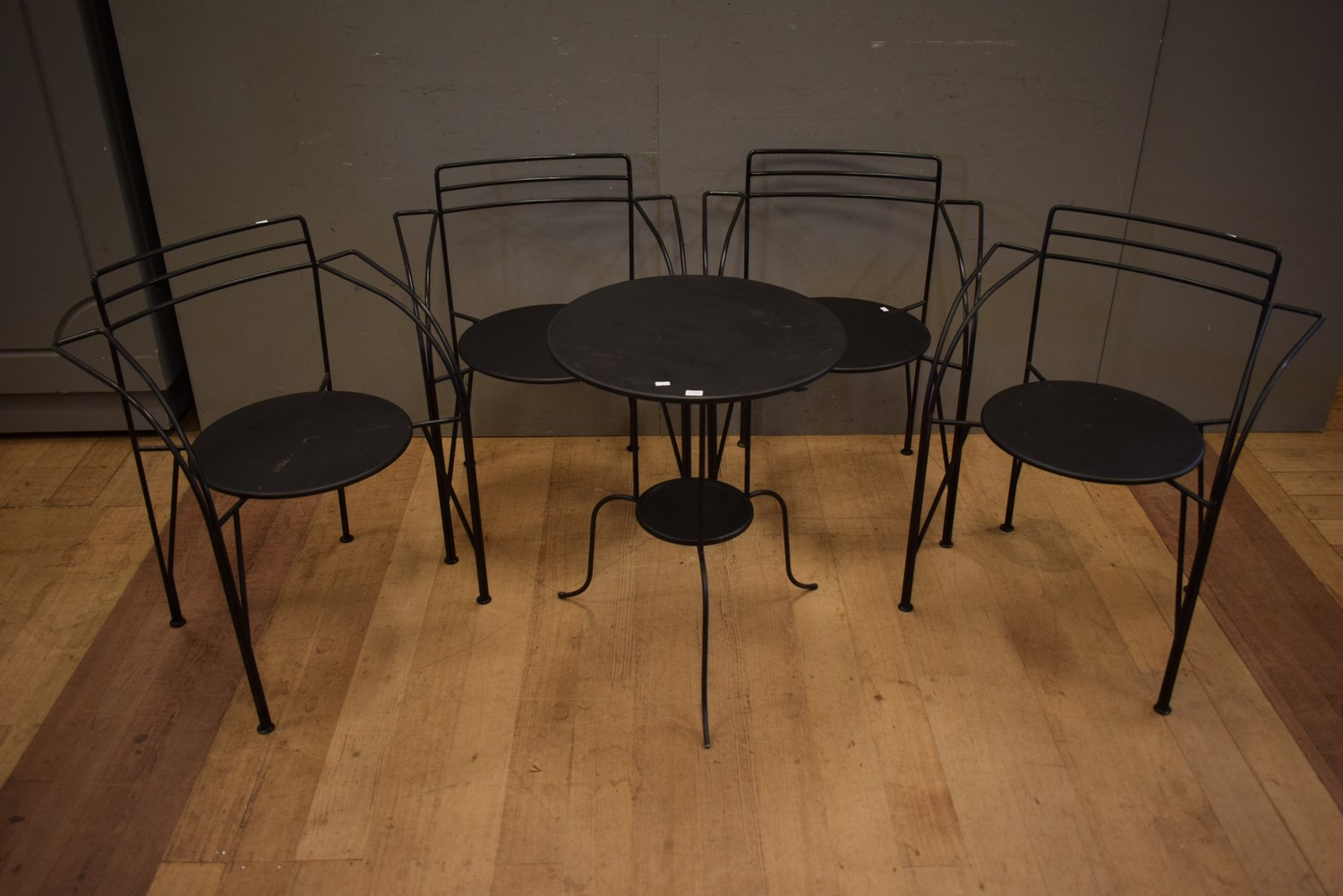 A SET OF FOUR MID-CENTURY OUTDOOR CHAIRS AND ONE TABLE (75H x 62W x 48D CM) (LEONARD JOEL DELIVERY SIZE: LARGE)