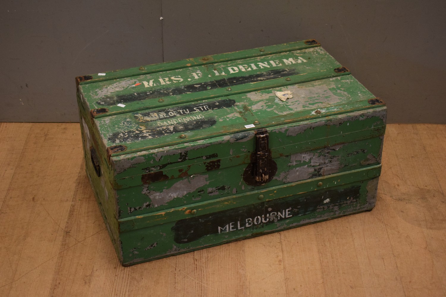 A LARGE RUSTIC TIMBER TRUNK (38H x 80W x 50D CM) (LEONARD JOEL DELIVERY SIZE: LARGE)