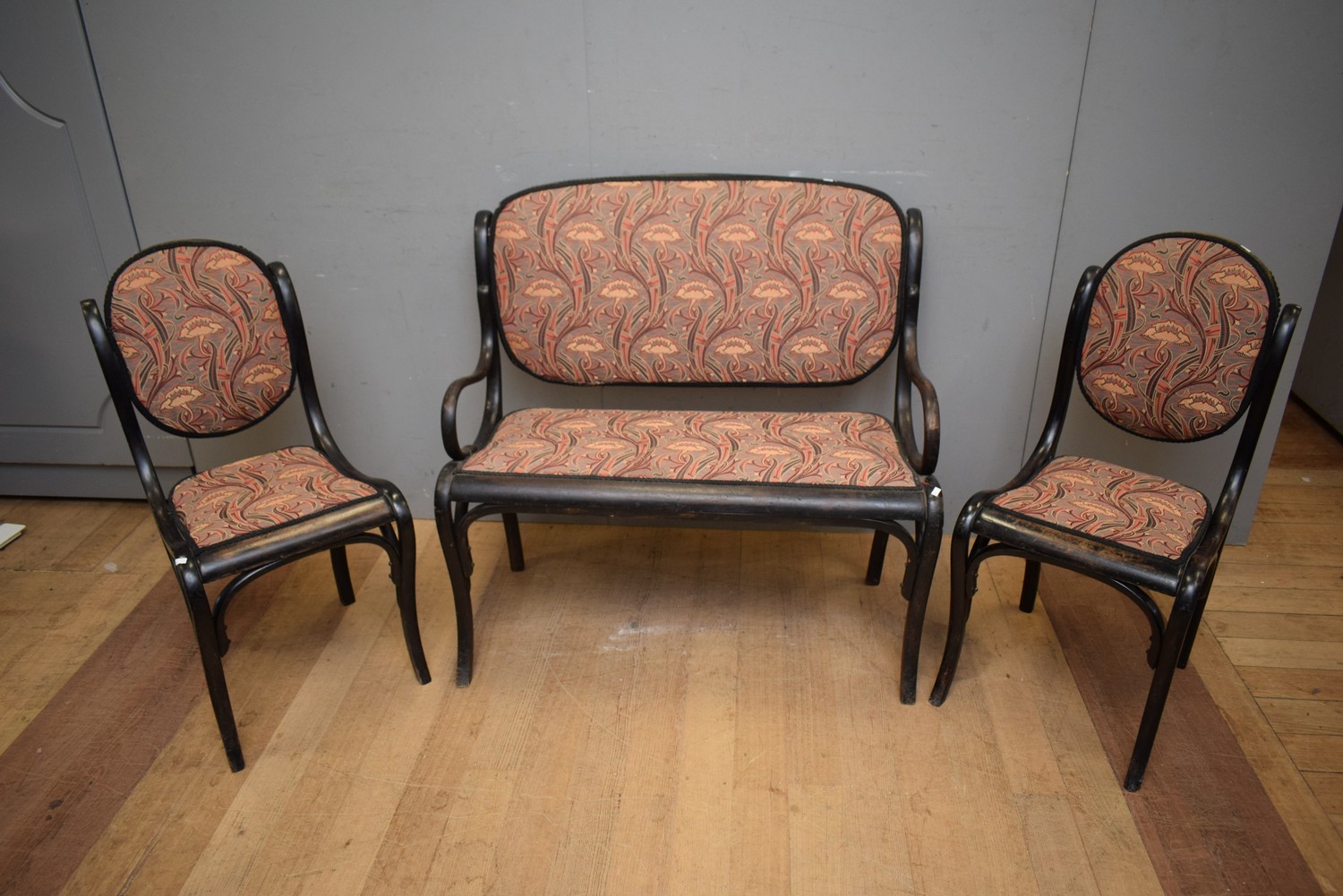 A THREE PIECE BENTWOOD SUITE BY J & J KOHN (98H x 103W x 64D CM) (LEONARD JOEL DELIVERY SIZE: LARGE)