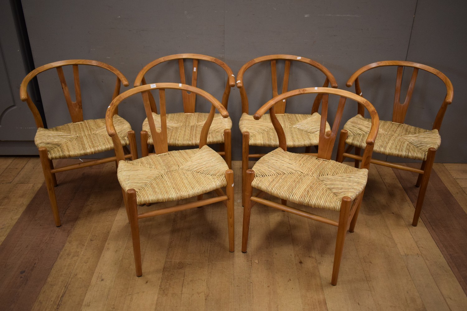 SIX WISHBONE STYLE CHAIRS WITH GENUINE RUSH SEATS (74H x 49W x 51D CM) (LEONARD JOEL DELIVERY SIZE: LARGE)
