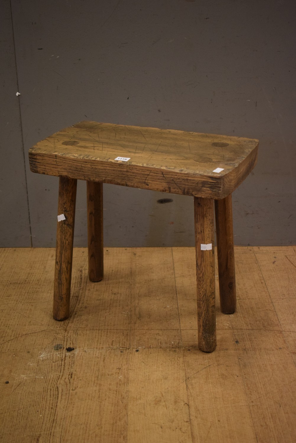 A FRENCH OAK FARMHOUSE STYLE MILKING STOOL (38H x 41W x 23D CM) (LEONARD JOEL DELIVERY SIZE: MEDIUM)