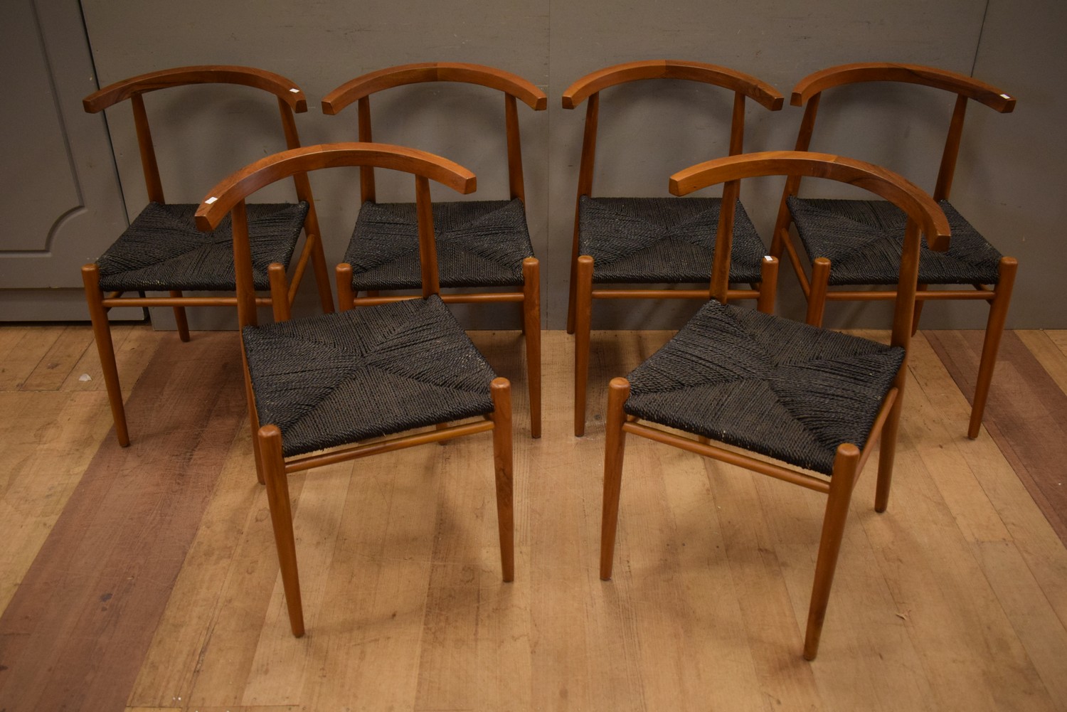 SIX TEAK AND ROPE WEAVE DINING CHAIRS (A/F) (81H x 53W x 54D CM) (LEONARD JOEL DELIVERY SIZE: LARGE)