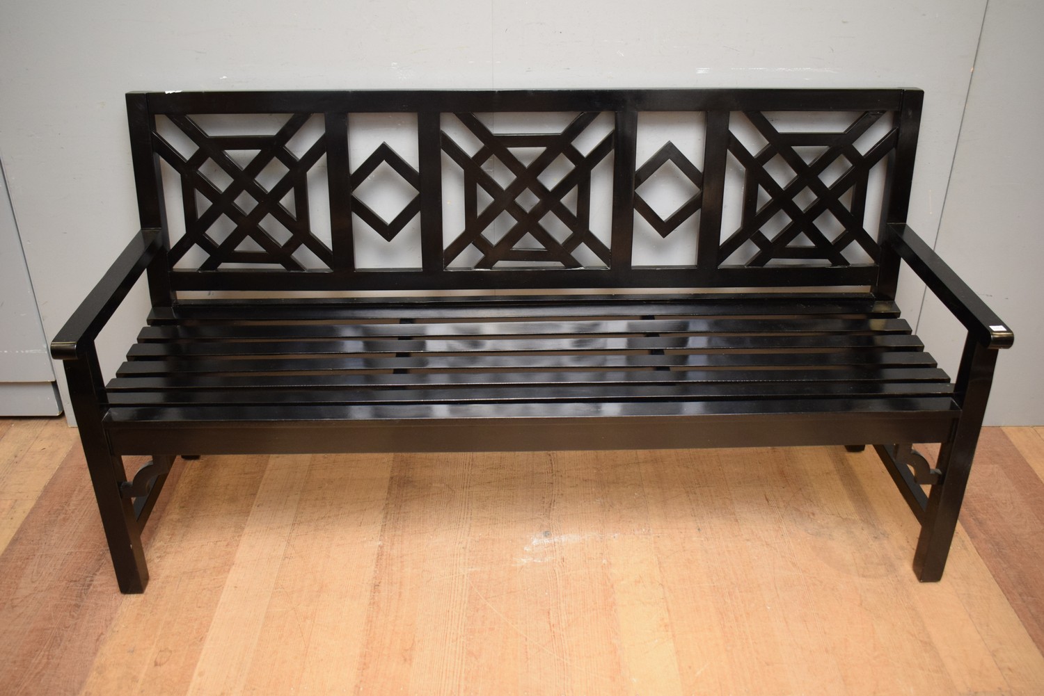 A BLACK TWO PAK TEAK OUTDOOR BENCH SEAT (95H x 180W x 64D CM) (PLEASE NOTE THIS HEAVY ITEM MUST BE REMOVED BY CARRIERS AT THE CUSTOMER'S EXPENSE. LEONARD JOEL STAFF CANNOT ASSIST CARRYING THIS ITEM) (X-LARGE ITEM)