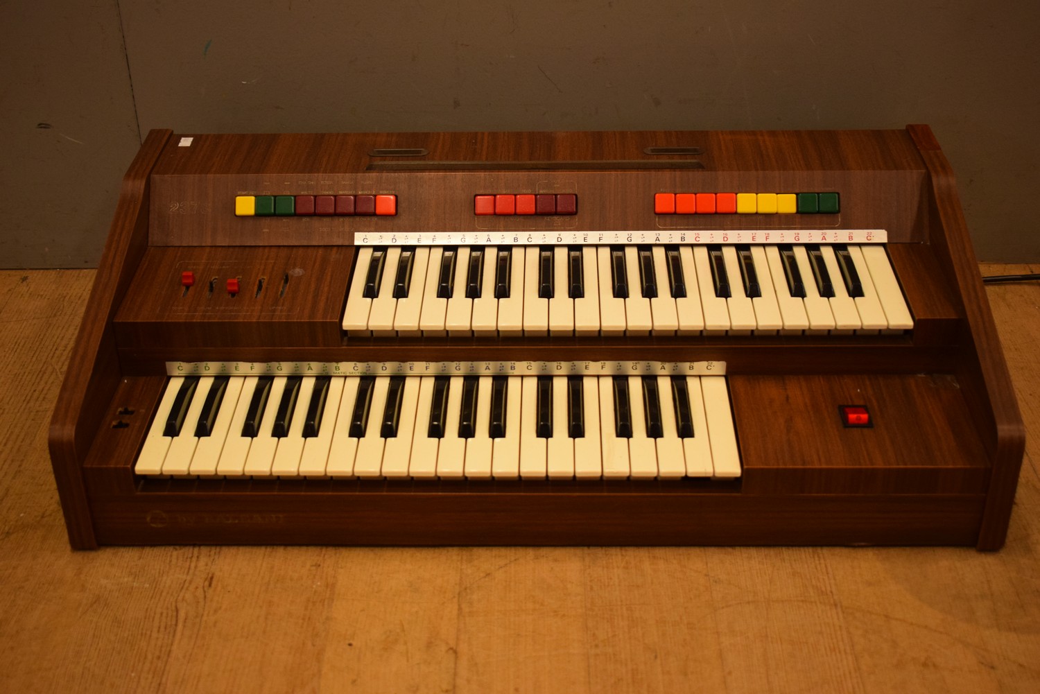 A VINTAGE ELECTRIC ORGAN (A/F UNTESTED) (21H X 82W X 43L CM) (LEONARD JOEL DELIVERY SIZE: MEDIUM)