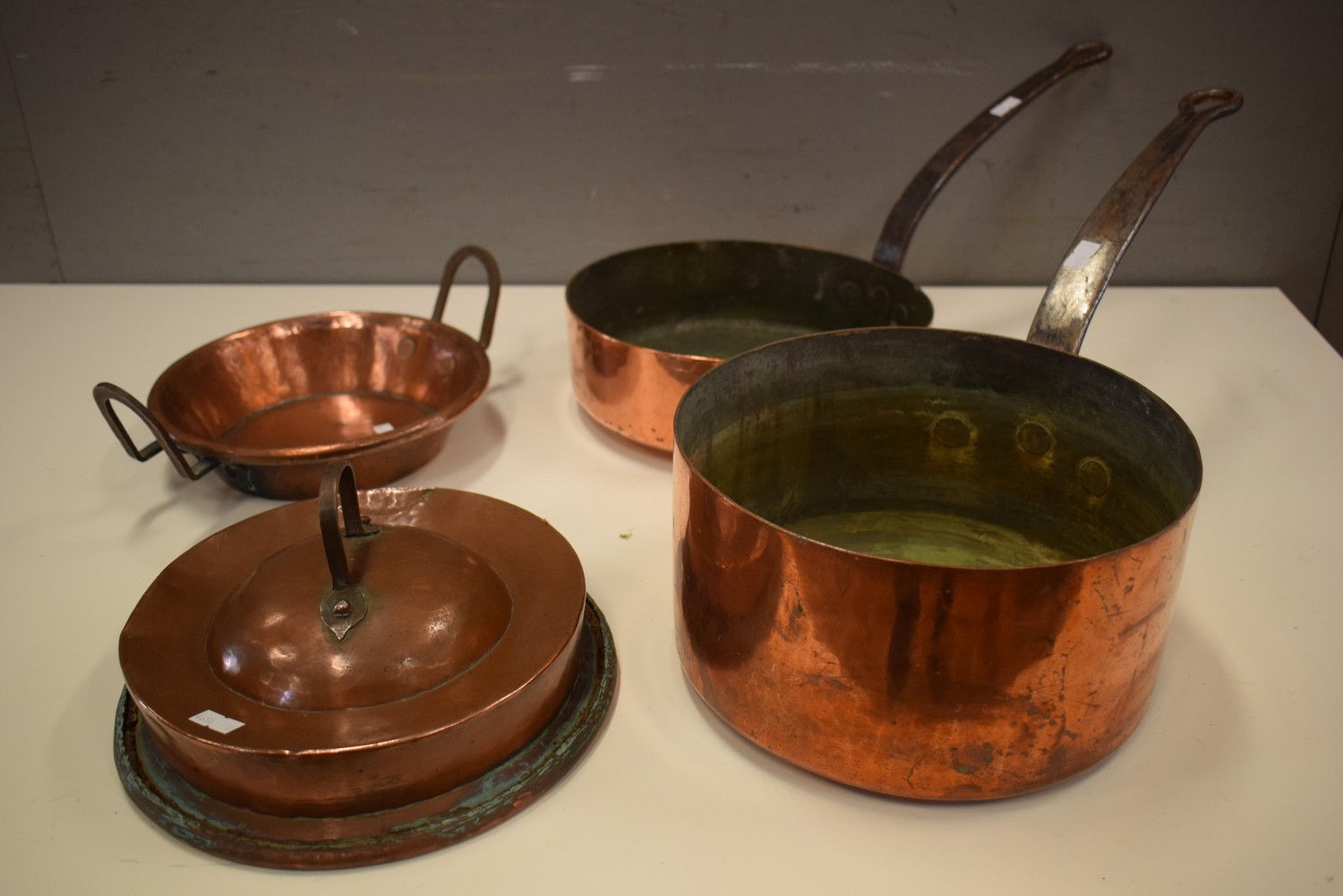 A COLLECTION OF FOUR FRENCH COPPER PIECES (H18 X W53 CM) (LEONARD JOEL DELIVERY SIZE: SMALL)