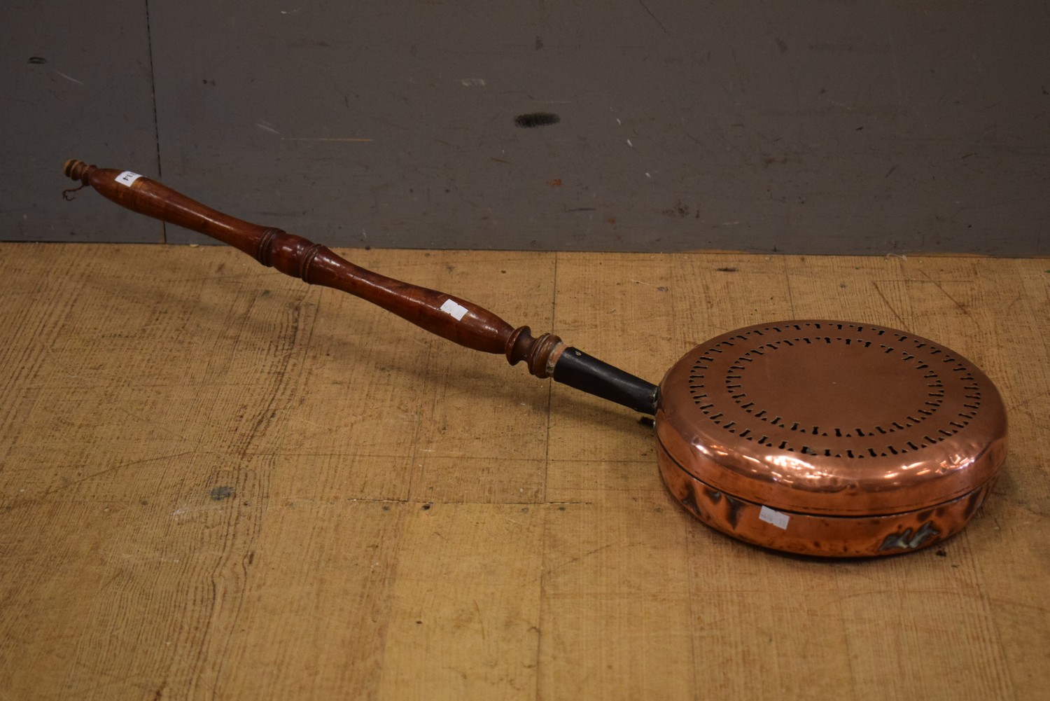 AN ETCHED FRENCH COPPER BED WARMER (11H X 87W X 28D CM) (LEONARD JOEL DELIVERY SIZE: SMALL)