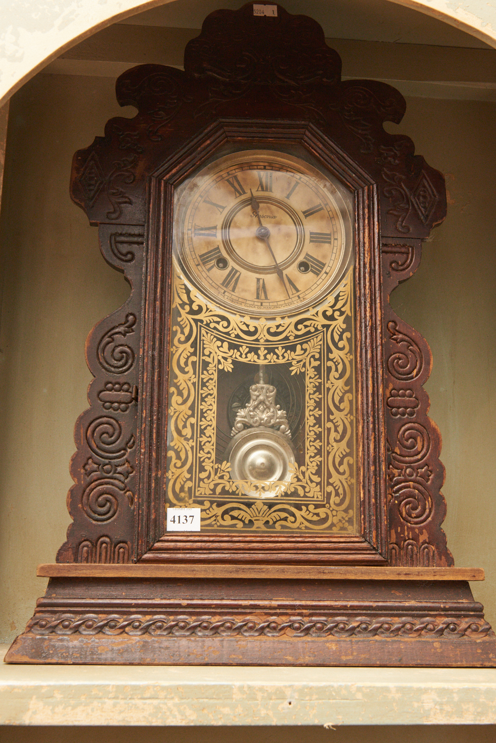 AN ANSONIA COTTAGE CLOCK WITH KEY, LEONARD JOEL LOCAL DELIVERY SIZE: SMALL