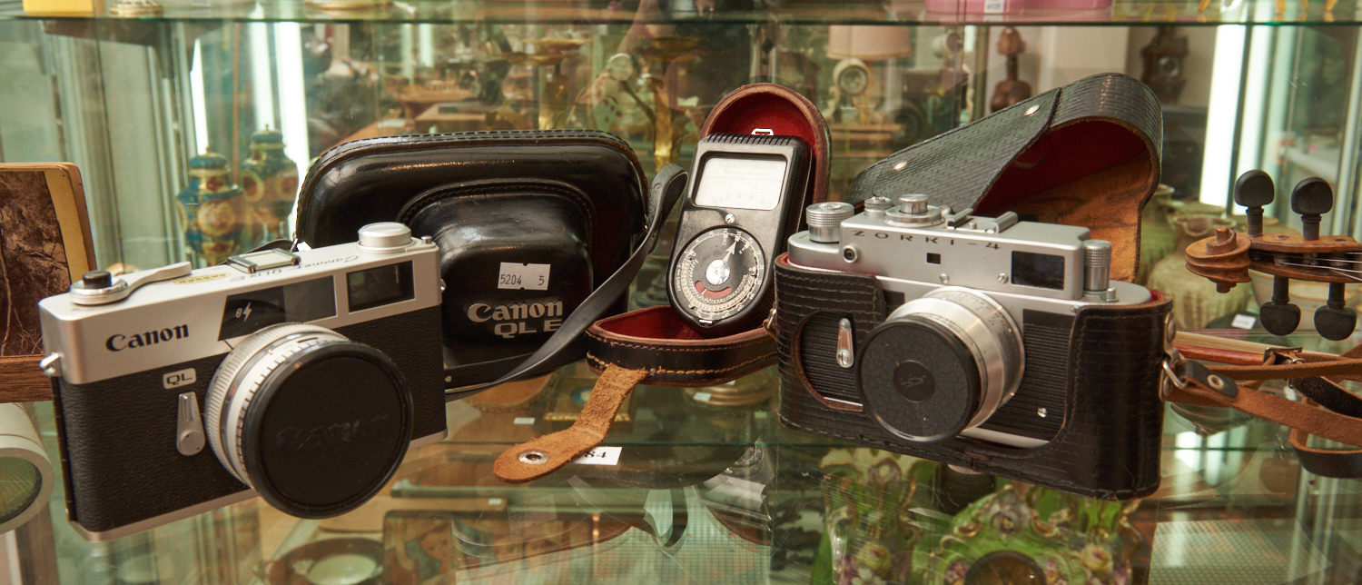 CANON (CANONET - QL19) 35 MM CAMERA AND ZORKI-4 35MM CAMERA TOGETHER WITH LIGHT METER, LEONARD JOEL LOCAL DELIVERY SIZE: SMALL