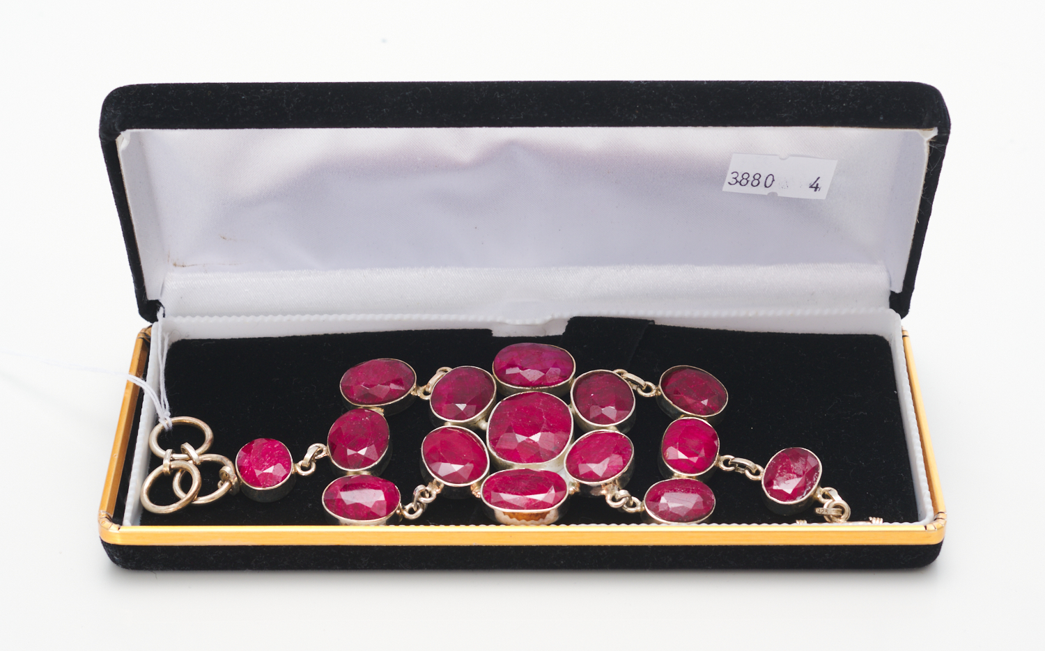 A RUBY BRACELET IN SILVER, BOXED (WITH PAPERS)