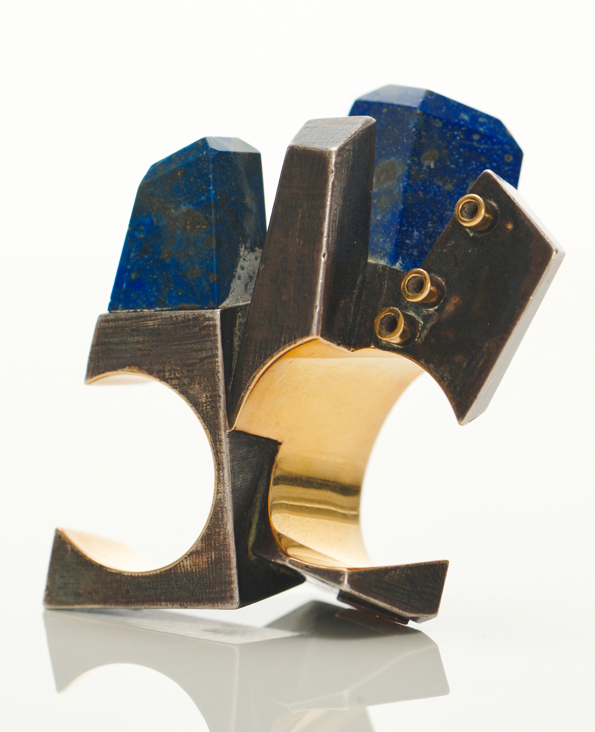 Stamped "Lander Sterling Silver 18k" underneath the shank