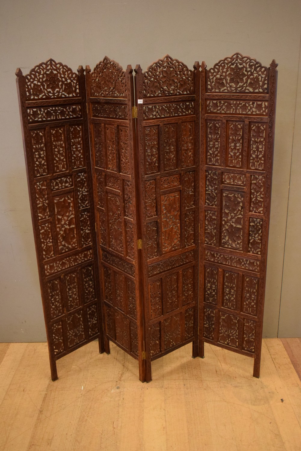 A FINELY CARVED FOUR PANEL SCREEN (170H X 38W EACH PANEL) (LEONARD JOEL DELIVERY SIZE: MEDIUM)