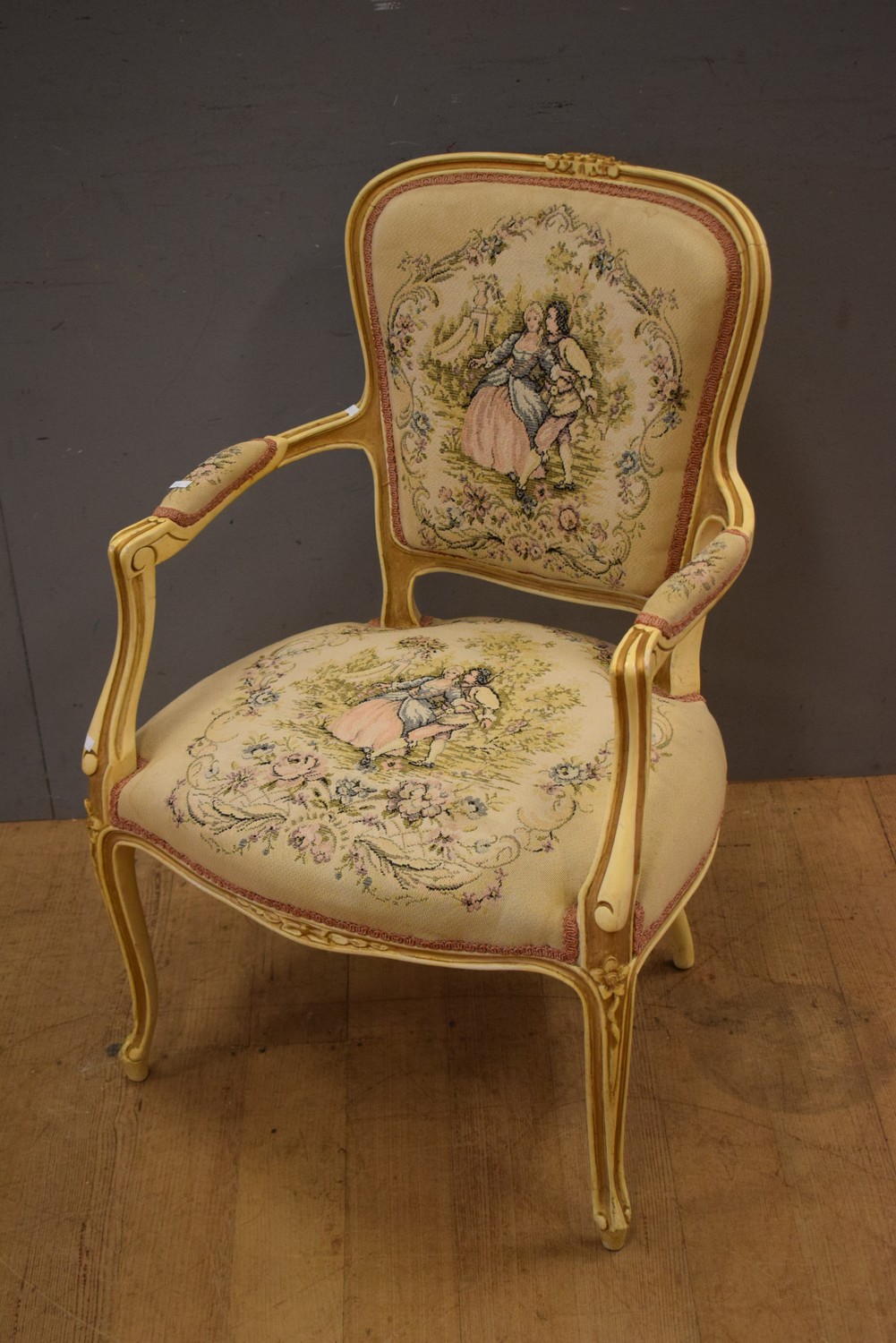 A LOUIS XV STYLE UPHOLSTERED FAUTEUIL (H87 X W57 X D62 CM) (LEONARD JOEL DELIVERY SIZE: MEDIUM)