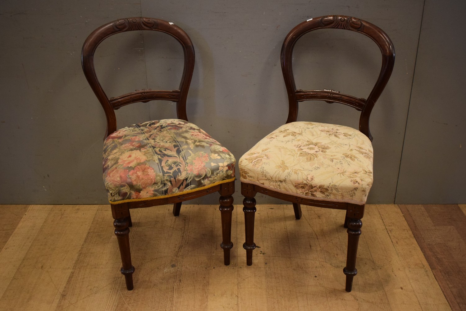 TWO CARVED BALLOON BACK DINING CHAIRS (A/F) (90H X 46W X 56D CM) (LEONARD JOEL DELIVERY SIZE: MEDIUM)