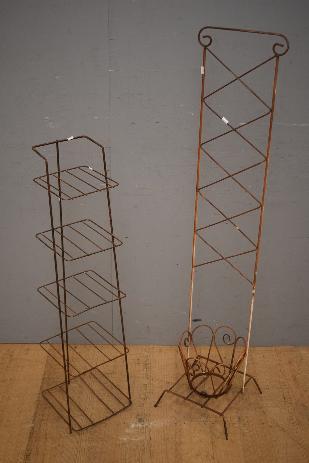 TWO 1940S STEEL MULTI TIER PLANT STANDS (130H x 30W x 30D CM) (LEONARD JOEL DELIVERY SIZE: MEDIUM)