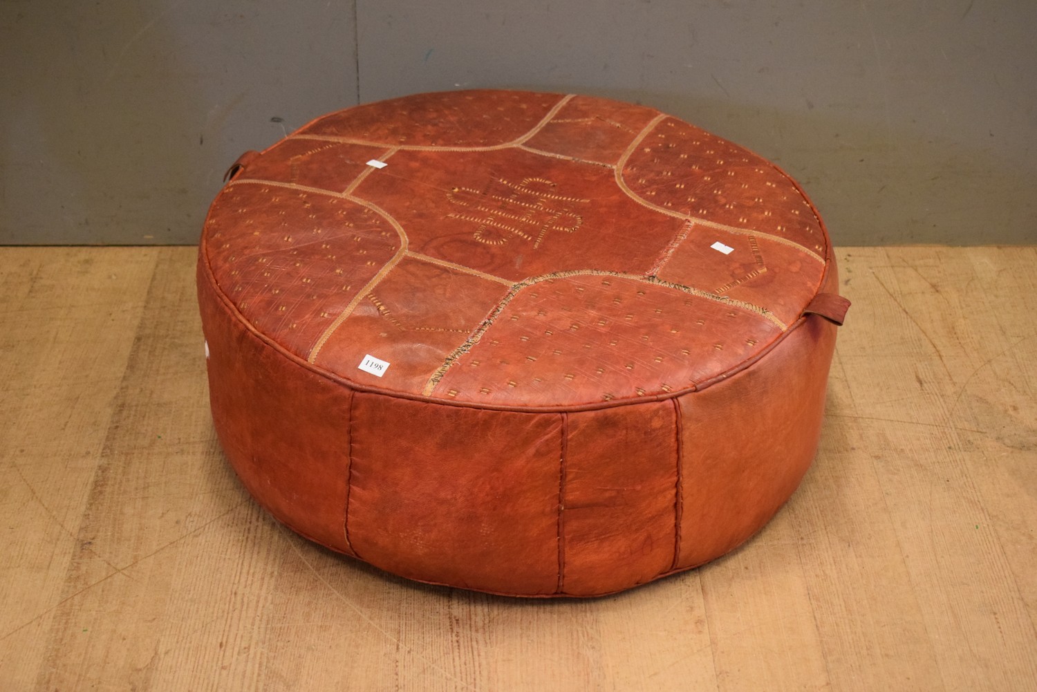 1930S LARGE LEATHER STITCHED OTTOMAN (A/F) (25H x 68D CM) (LEONARD JOEL DELIVERY SIZE: MEDIUM)