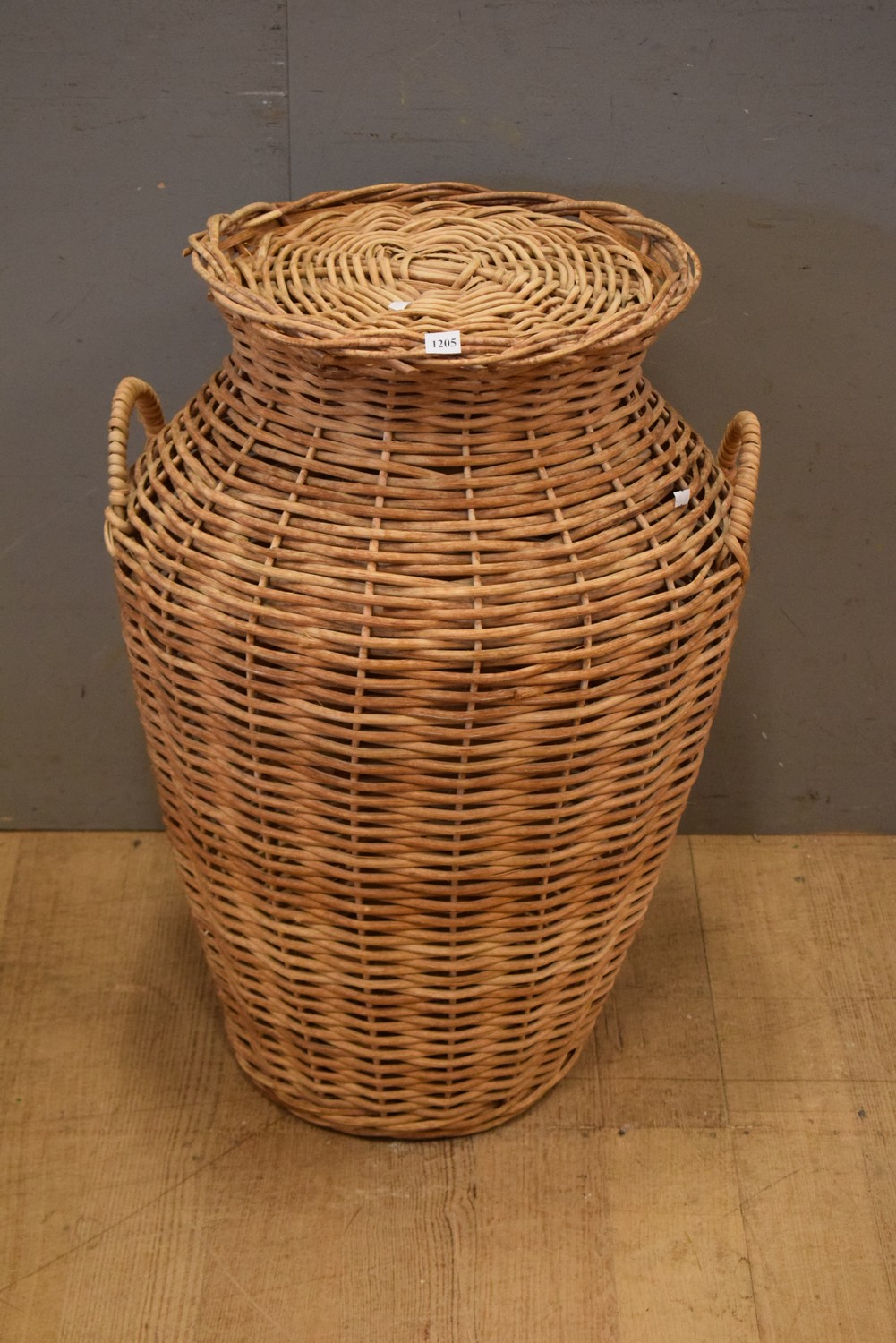 LARGE 1940S CANE LIDDED GENIE FORM BASKET WITH 2 HANDLES (71H x 51D CM) (LEONARD JOEL DELIVERY SIZE: MEDIUM)