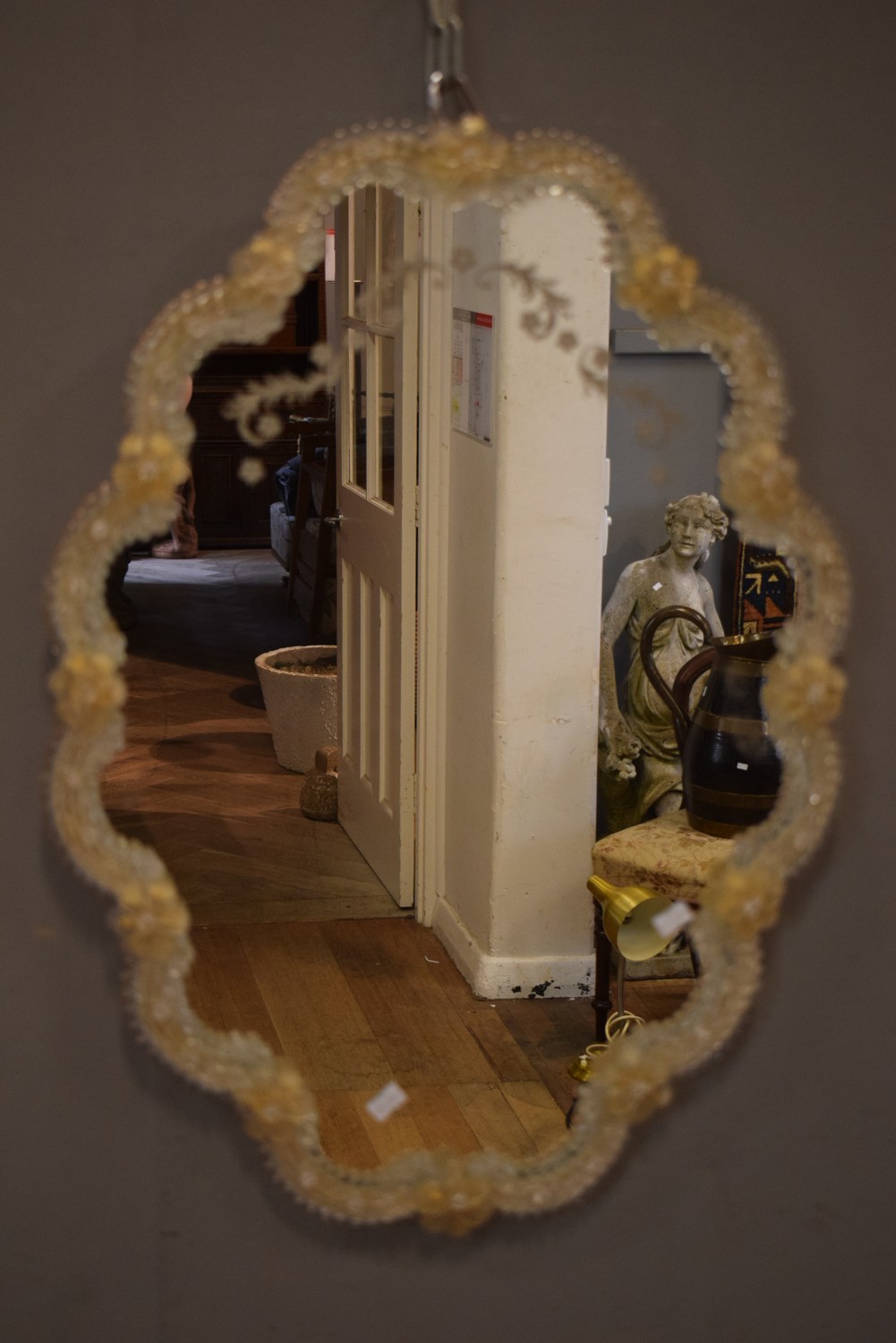 A 1920S VENETIAN GLASS MIRROR WITH FLORAL AND FOLIATE DETAILS (68H X 50W CM) (LEONARD JOEL DELIVERY SIZE: MEDIUM)