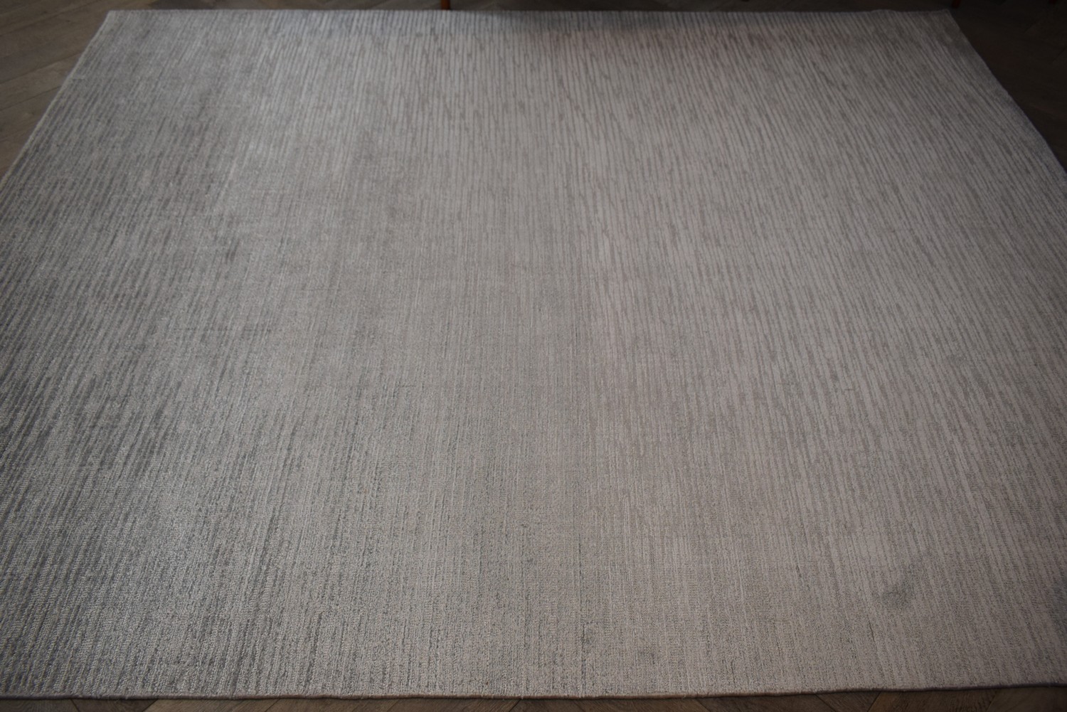 A BRAND-NEW MODERN VOGUE COLLECTION HAND-LOOMED CARPET IN A PLATINUM TONNE SILKY TEXTURE. SIZE: 310X243CM ORIGIN: INDIA
