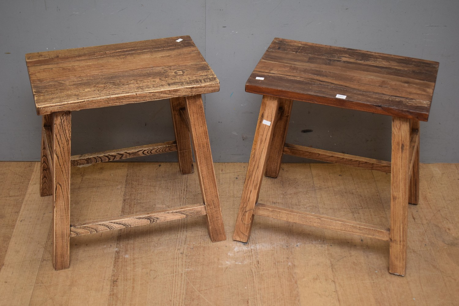 A PAIR OF TIMBER STOOLS (53H x 50W x 33D CM) (LEONARD JOEL DELIVERY SIZE: MEDIUM)