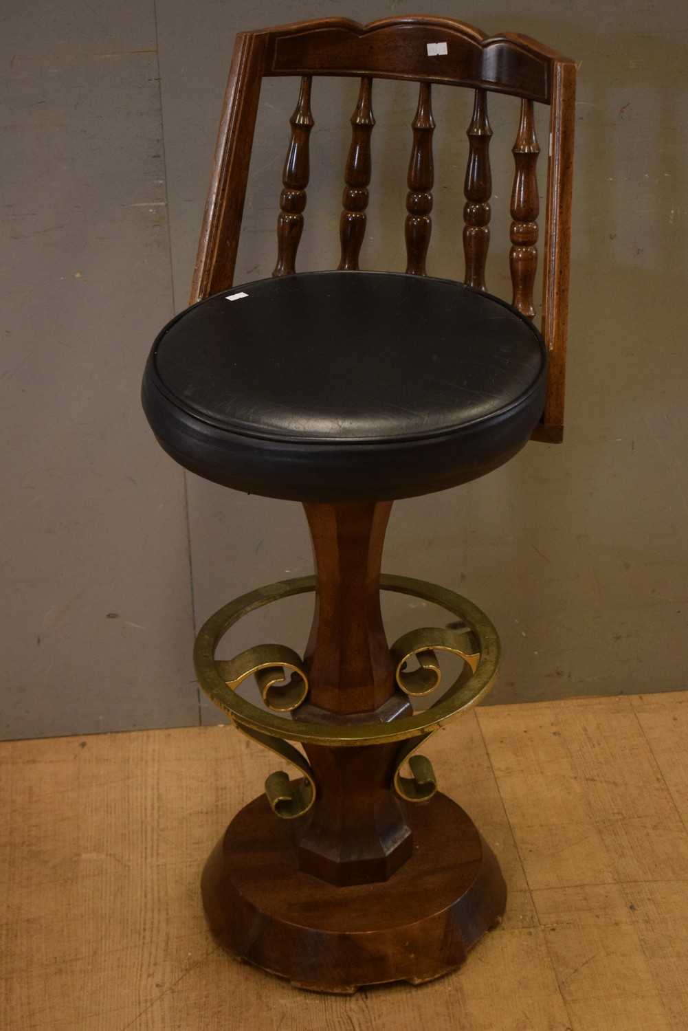 A PROVINCIAL STYLE LEATHER BAR SEAT (98H X 42D CM) (LEONARD JOEL DELIVERY SIZE: MEDIUM