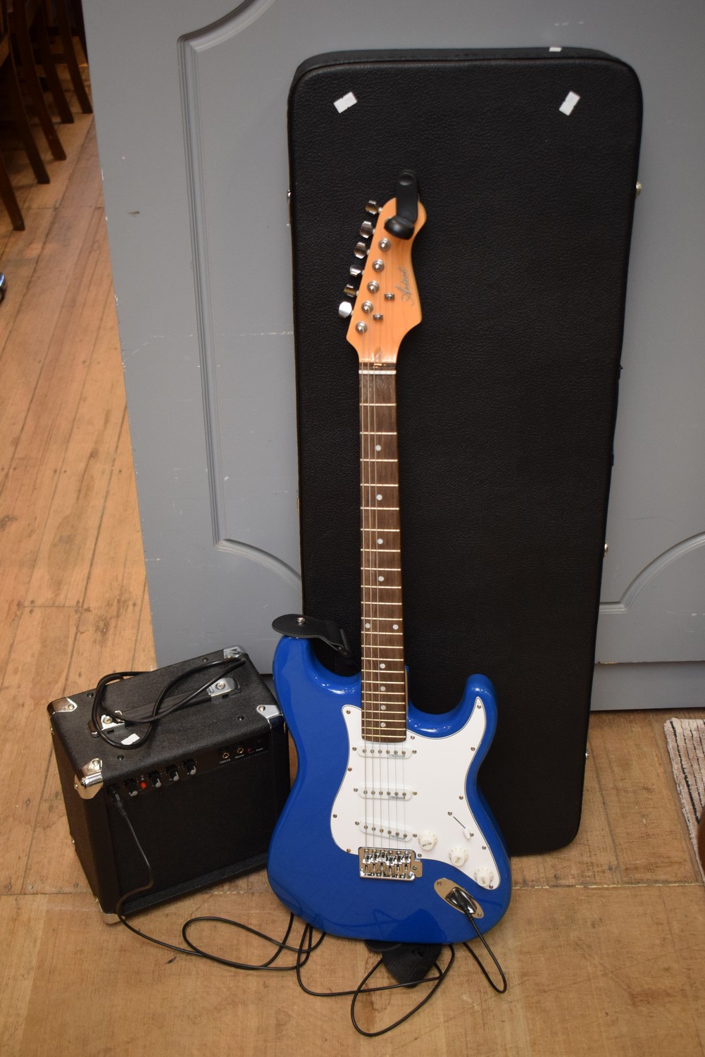 AN ARTIST STRATOCASTER REPLICA WITH HARD CASE, TUNER AND AMPLIFIER