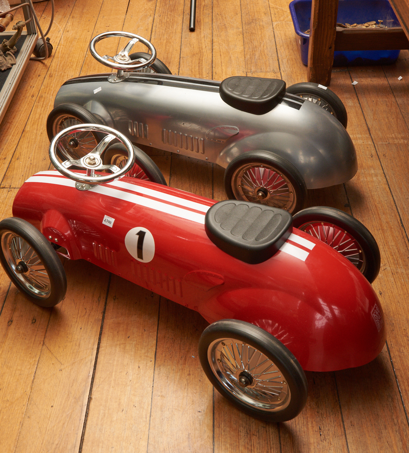 TWO CHILDRENS RIDE ON VINTAGE CARS IN GOOD CONDITION W.79CM, LEONARD JOEL LOCAL DELIVERY SIZE: SMALL