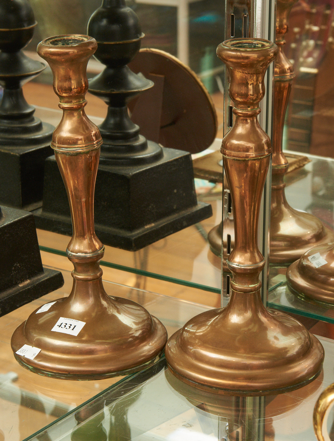 A PAIR OF COPPER CANDLESTICKS, LEONARD JOEL LOCAL DELIVERY SIZE: SMALL