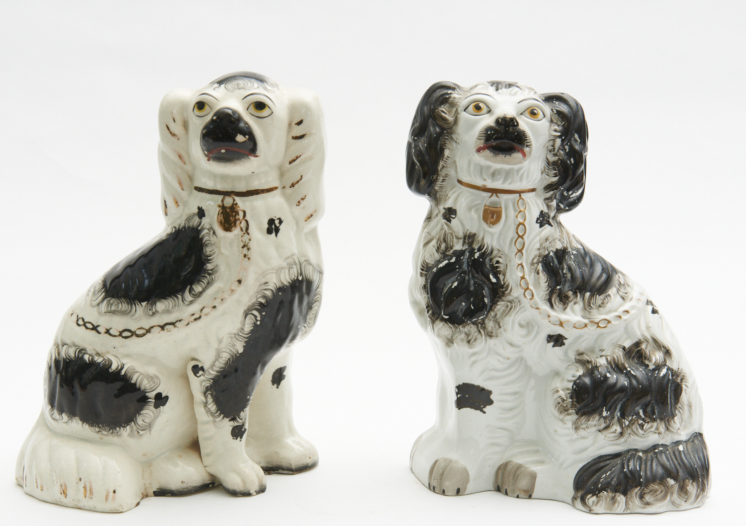 A PAIR OF MATCHED STAFFORDSHIRE DOGS, LEONARD JOEL LOCAL DELIVERY SIZE: SMALL