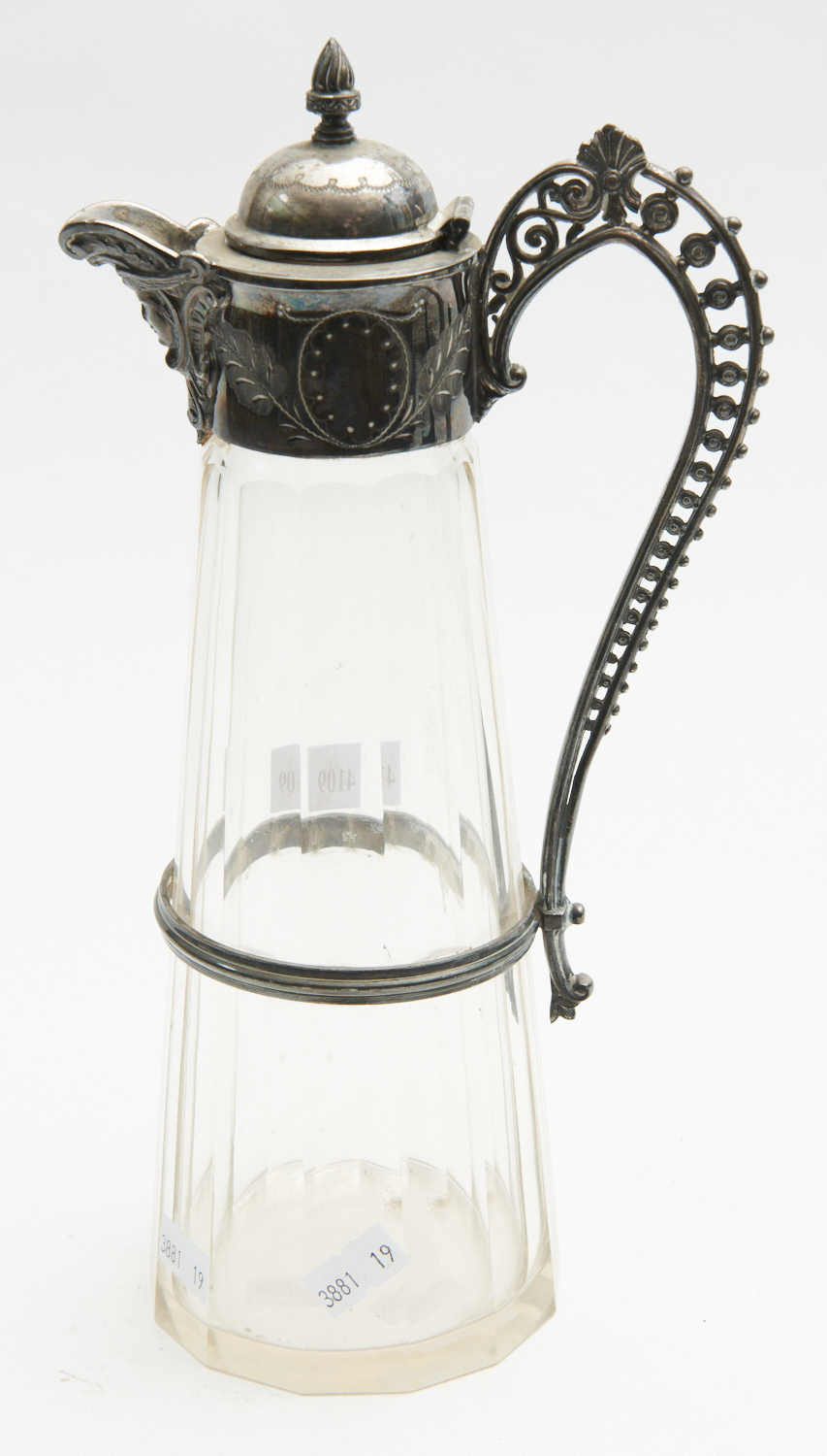 A SILVERPLATE TOPPED CLARET JUG, LEONARD JOEL LOCAL DELIVERY SIZE: SMALL