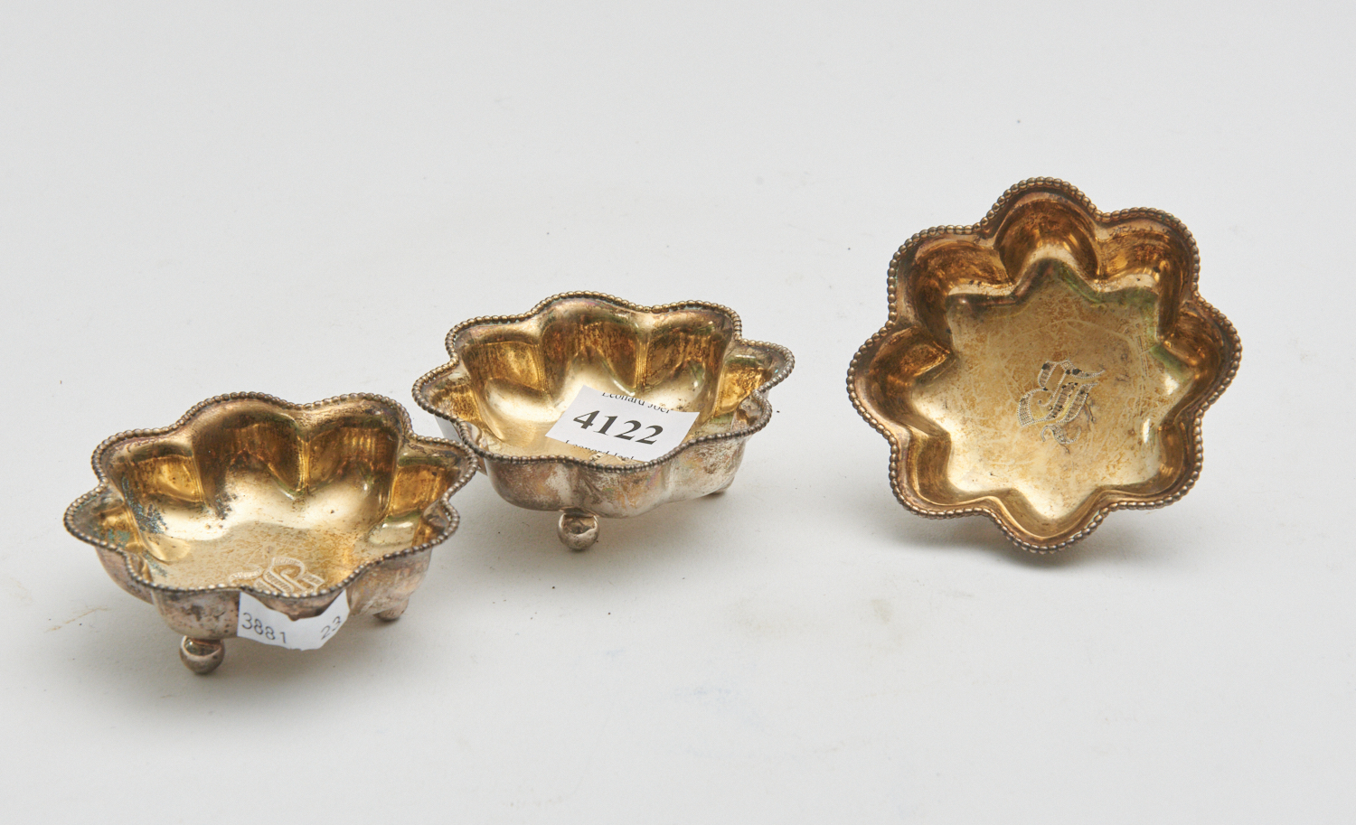 THREE STERLING SILVER SALTS WITH BEADED RIMS, LEONARD JOEL LOCAL DELIVERY SIZE: SMALL