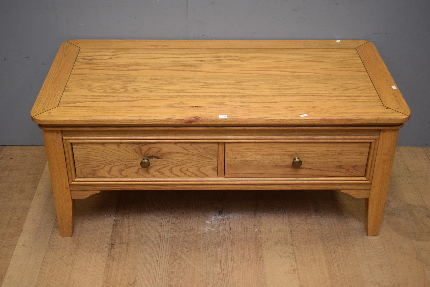 A PROVINCIAL AMERICAN OAK COFFEE TABLE WITH TWO DRAWERS (51H x 120W x 60D CM) (LEONARD JOEL DELIVERY SIZE: LARGE)