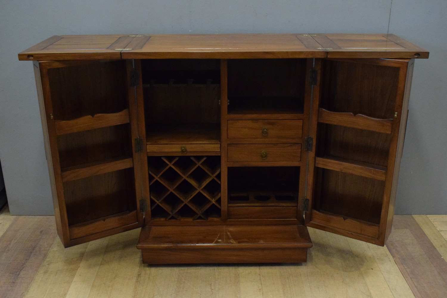 A SUBSTANTIAL CHINESE CARVED BAR (116H x 184W x 52D CM) (PLEASE NOTE THIS HEAVY ITEM MUST BE REMOVED BY CARRIERS AT THE CUSTOMER'S EXPENSE. LEONARD JOEL STAFF CANNOT ASSIST CARRYING THIS ITEM) (X-LARGE ITEM)