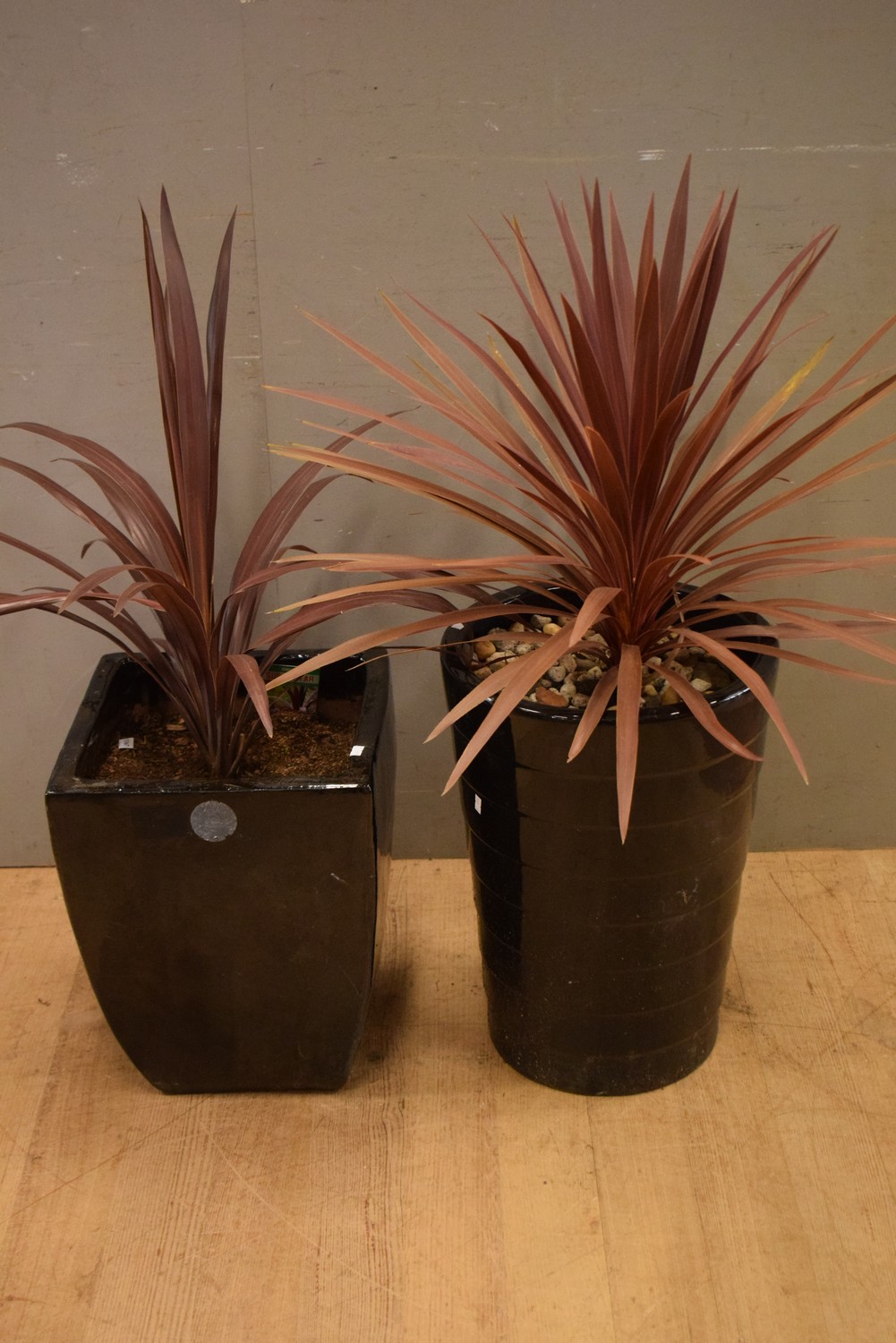 TWO YUKKA PLANTS IN GLAZED POTS (H53 X D38 CM) (PLEASE NOTE THIS HEAVY ITEM MUST BE REMOVED BY CARRIERS AT THE CUSTOMER'S EXPENSE. LEONARD JOEL STAFF CANNOT ASSIST CARRYING THIS ITEM) (X-LARGE ITEM)