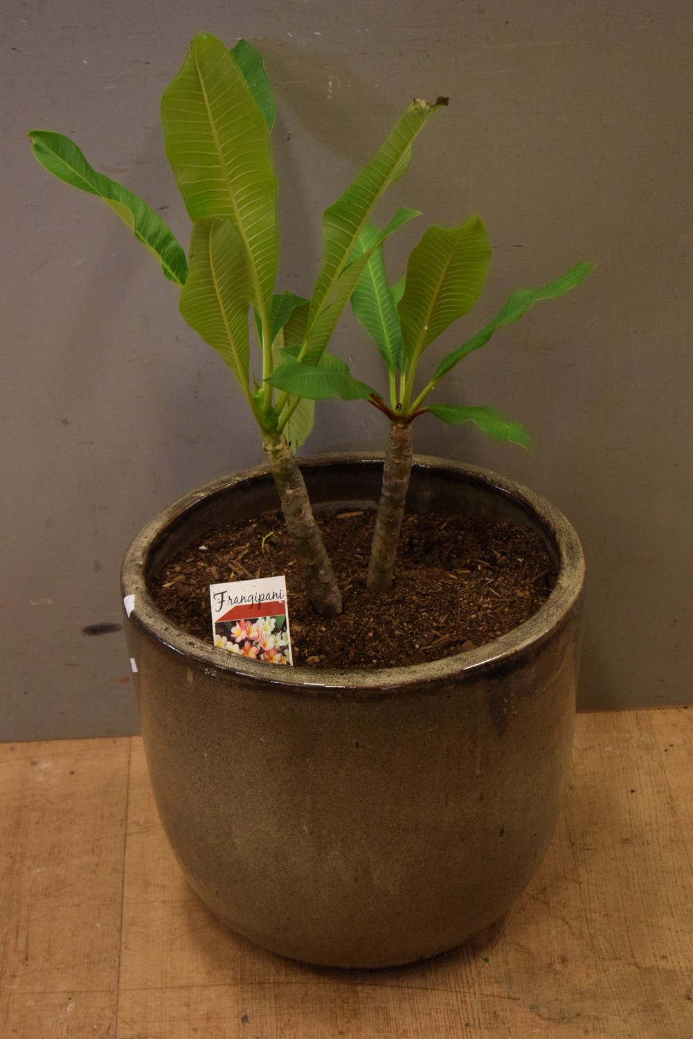 A FRANGIPANI IN A CERAMIC GLAZED POT (36H X 38W CM) (PLEASE NOTE THIS HEAVY ITEM MUST BE REMOVED BY CARRIERS AT THE CUSTOMER'S EXPENSE. LEONARD JOEL STAFF CANNOT ASSIST CARRYING THIS ITEM) (X-LARGE ITEM)